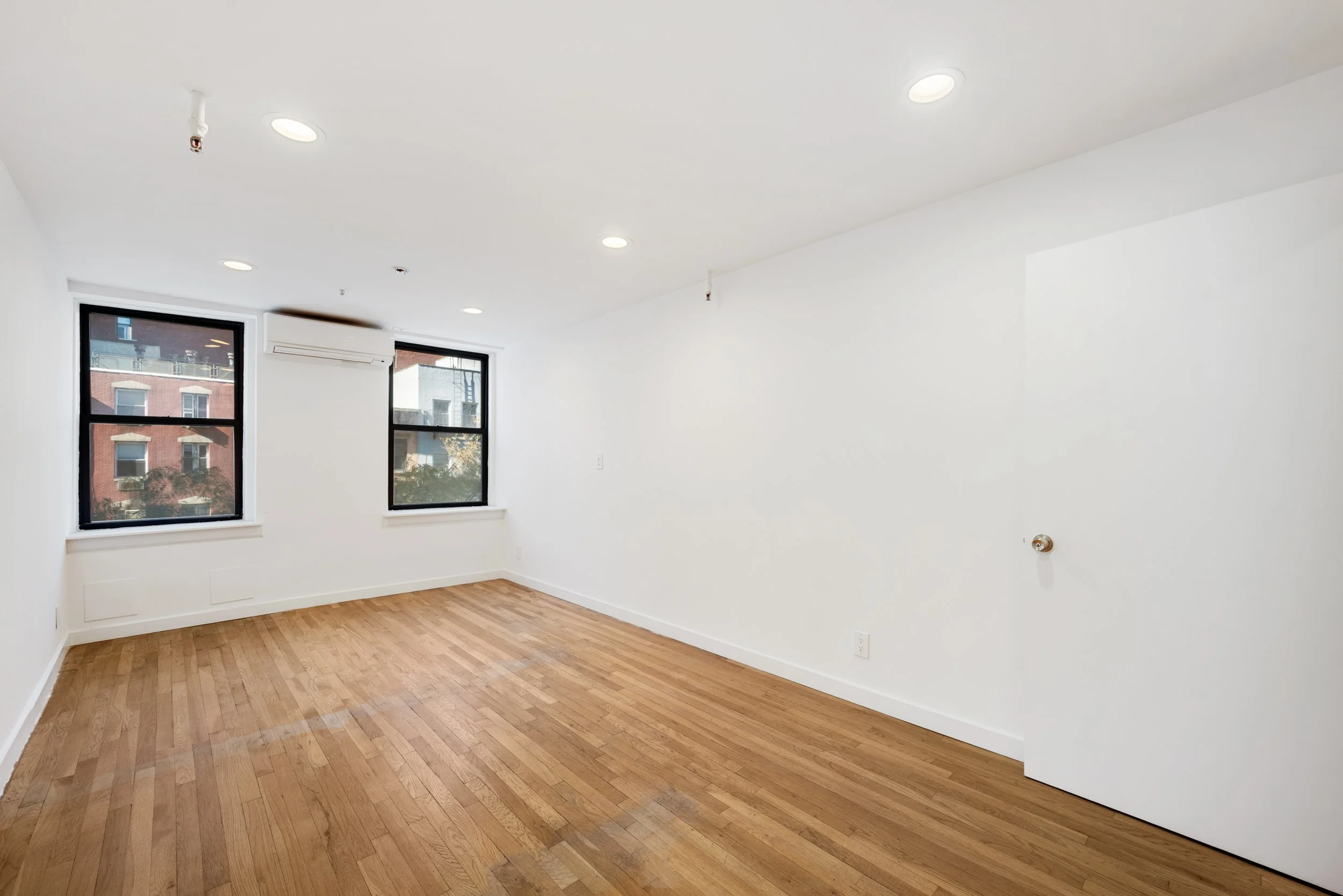 Bright, inviting office space featuring timeless wood floors and views of Third Avenue.